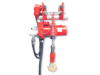 起吊機構包括氣動馬達、行星減速器、吊掛總成、制動器、起重鏈條、吊鉤總成和主控閥。起吊機構通過控制主控閥,來實現起吊重物的升、降,通過開閉制動器達到起升、下降定位制動。環鏈氣動葫蘆確保起吊作業的安全,耶魯氣動葫蘆起吊機構整體可固定使用,也可置于行走機構下方移動使用。