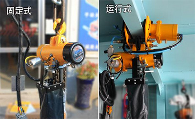 氣動(dòng)葫蘆有兩種運(yùn)行方式,固定式和運(yùn)行式,固定式帶有掛鉤固定某一處來(lái)工作;而運(yùn)行式是搭配運(yùn)行小車,安裝軌道實(shí)現(xiàn)滑動(dòng)工作。
