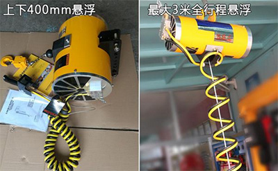 氣動(dòng)平衡器具有兩種懸浮特性(在一定范圍內(nèi)可手動(dòng)無(wú)阻力操作,定位準(zhǔn)確),一種是上下400mm的懸浮,另一種是最大3米全行程懸浮。