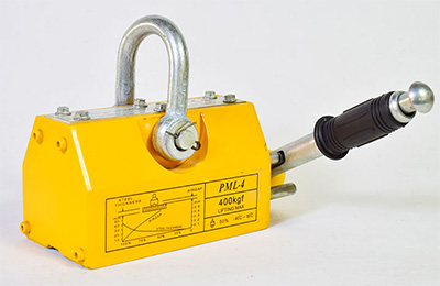 永磁起重器由高性能釹鐵硼永久磁性材料組成強磁系統,通過手柄的轉動,改變強磁系統磁力達到對工件的吸持和釋放。起重器上部有供提起物件的吊環,下有一V形槽供吸持相應的圓柱形物體所用。 永磁起重器采用的高性能永磁材料是:稀土永磁一釹鐵硼為磁源,具有不耗電、吸力強、剩磁低、操作輕便、壽命長、安全可靠等特點,產品結構先進,按照出口標準組織生產,品質性能達到國際同類產品先進水平。廣泛用于機械工業、模具制造業、倉庫和交通運輸等部門搬運鋼板、鋼錠等導磁性物體。