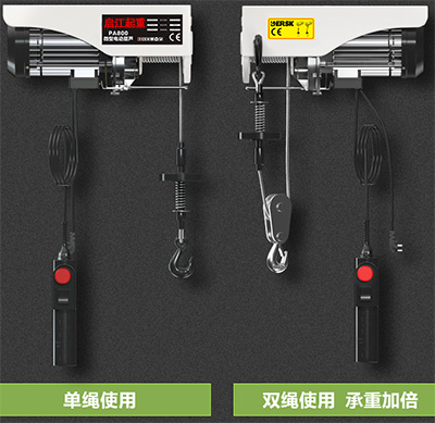強動力:硅鋼純銅高效電機;不燒機:浸漆機芯搭配散熱系統;安全:防塵防水,絕緣防漏;可靠:加粗防反轉鋼絲繩;