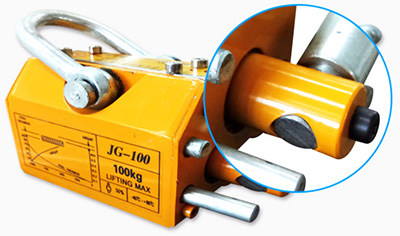 永磁起重器是由強磁釹鐵硼磁性材料組成磁路系統,產生強磁,通過手柄的旋向,控制磁路開關,達到工作目的。永磁起重器采用磁做動力,工作長久不變。
